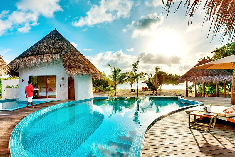 Sieben Nächte in der Sunset Beach Villa mit Frühstück, inkl. Flug ab FRA, Transfer ab/bis Flughafen Male per Inlandsflug und Schnellboot, Rail & Fly (1.Kl.), ein romantisches Abendessen pro Aufenthalt, eine 30-minütige Massage, eine 30-minütige Tennis-Stunde pro Person und Aufenthalt sowie einem hochwertigen Reiseführer nach Wahl